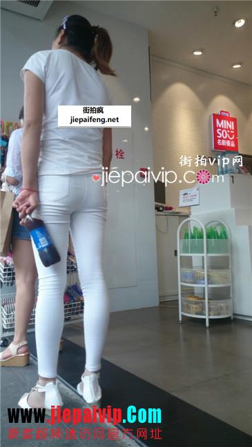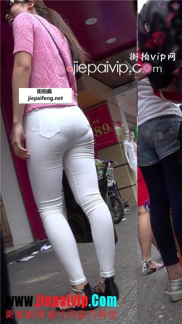 美女身着白色紧身裤很显身材,为什么要摸自己屁股呢