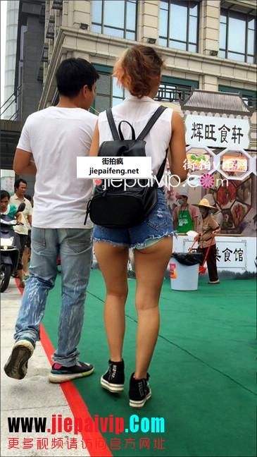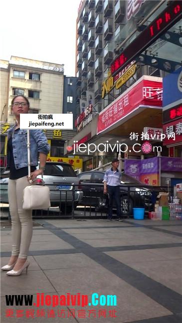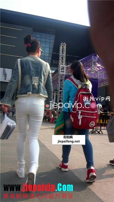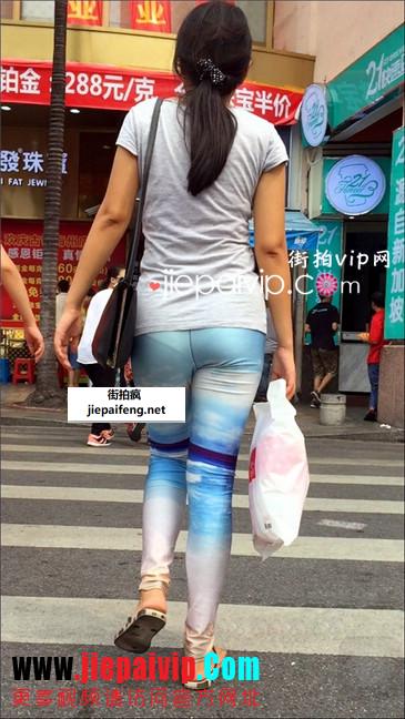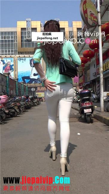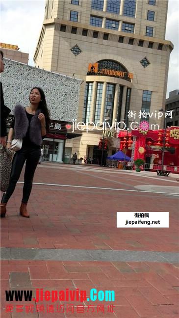 街拍紧身皮裤少妇圆润翘臀性感的很