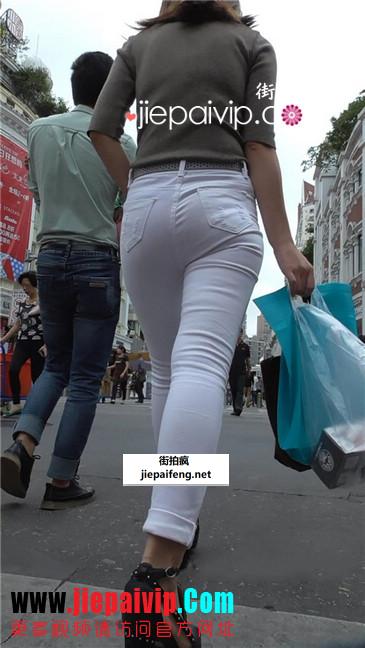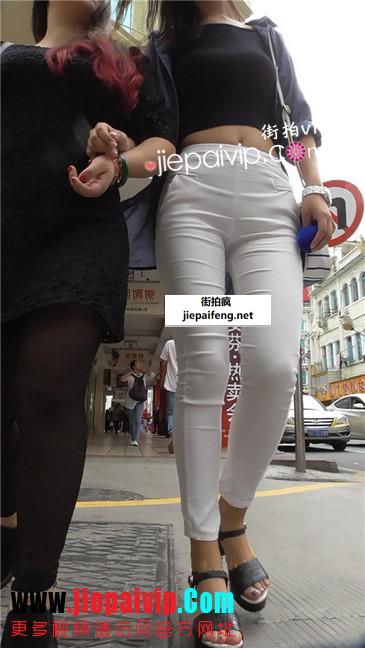 街拍紧身白裤美女
