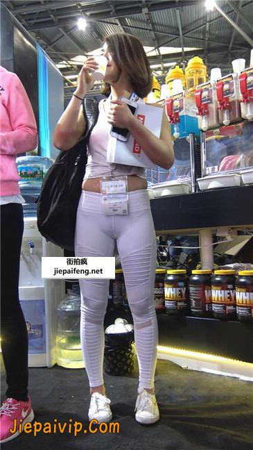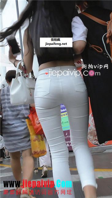 凹凸有致性感紧身白裤高跟大翘臀美女