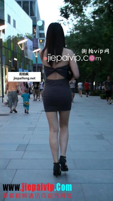 街拍黑色性感超短裙少妇