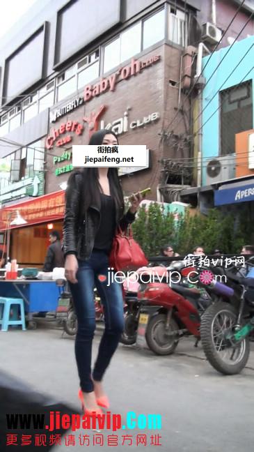 紧身牛仔裤美女为了漂亮脚再痛也要穿高跟鞋