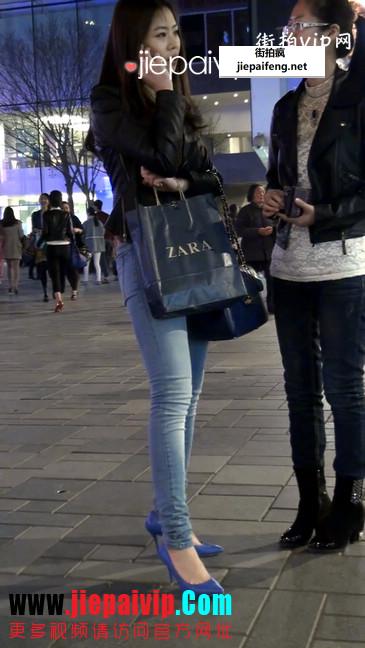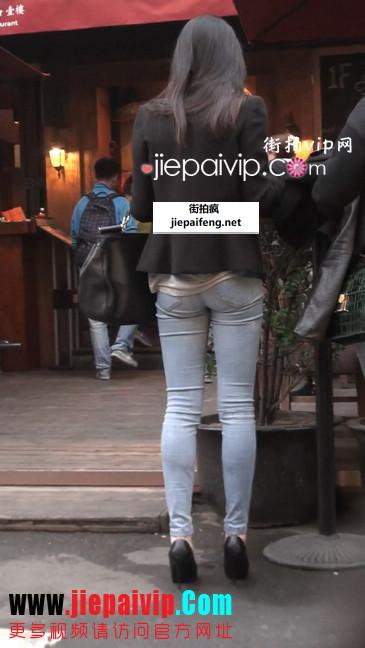 街拍紧身牛仔裤少妇,身体轮廓不错