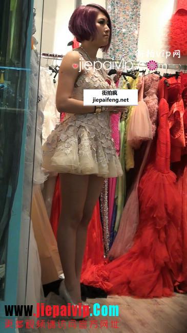 性感蓬蓬裙美女裙子太短一直捂着后面怕走光