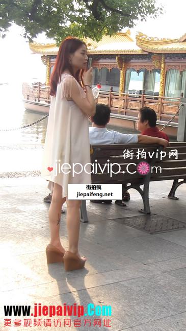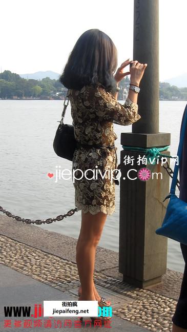 街拍图片,性感短裙少妇在西湖边游玩