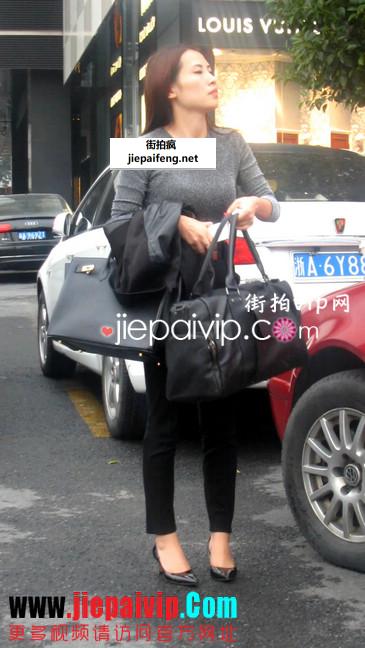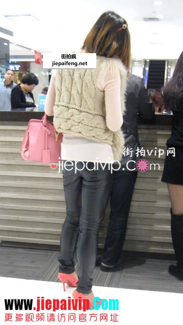 街拍紧身裤少妇身体的轮廓都要被看光了