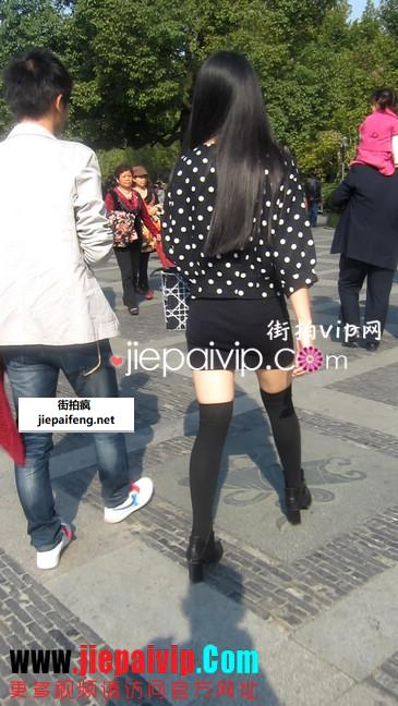 街拍,黑色小热裤白丝可爱美眉