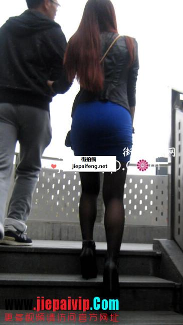 街拍,蓝色连衣裙美女屁股翘的很