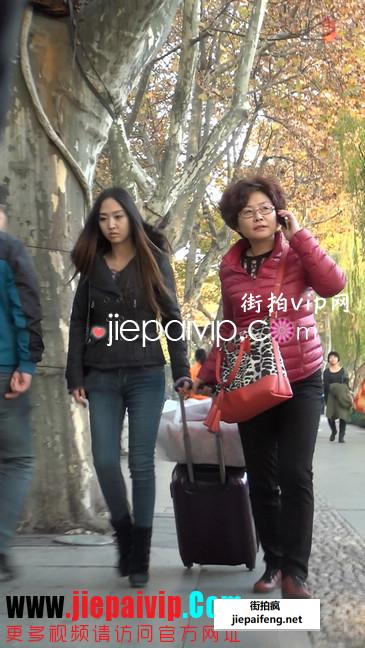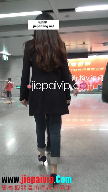 街拍牛仔长裤美女,长发披肩舞弄风搔