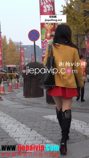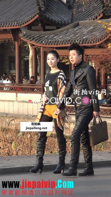 街拍,冬日里小热裤长靴美眉,性感分数丝毫不减