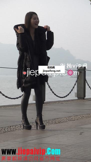 ›街拍,西湖边的黑丝高跟眼镜娘美眉