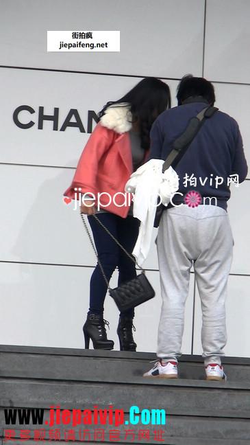 街拍,翘臀皮质紧身长裤美眉尽显身材
