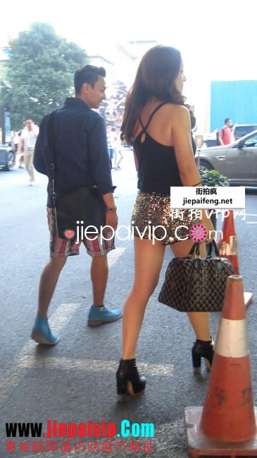 街拍极品牛仔热裤美女,高跟翘臀诱惑