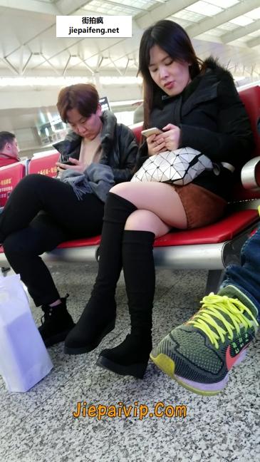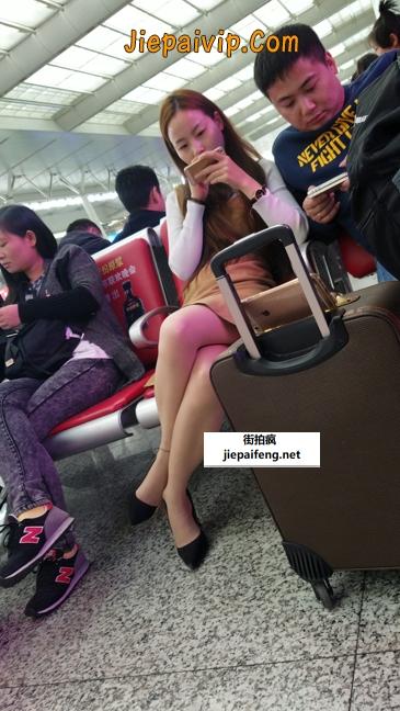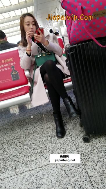 披肩长发短裙背影肉丝美女,着急去哪耍