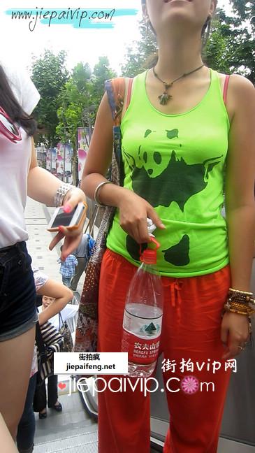 街拍着装很凉快的小热裤美眉,胸罩颜色都看到了