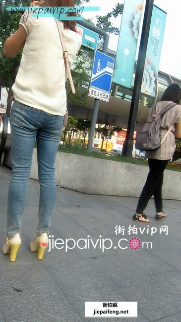 街拍白色裹臀牛仔裤美眉,走起路来屁股扭的真赞