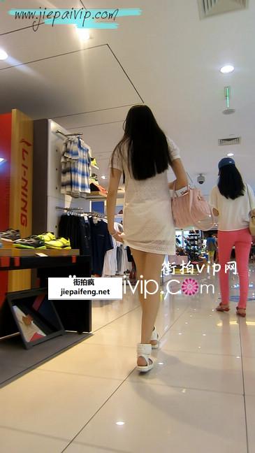 白色小热裤美眉,逛商场中看到什么都想买啊