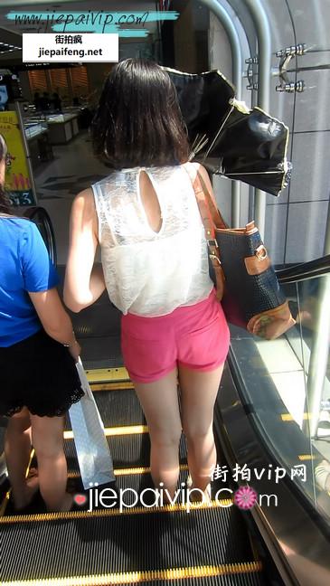 街拍小热裤少妇逛商场中,电梯视角看的好迷人