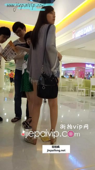 街拍美眉裙子很性感,裙子旁边的遮帘反倒增加了性感度