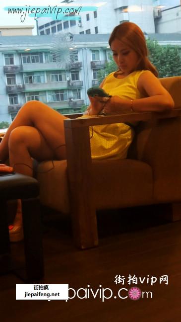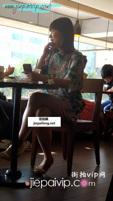 街拍短裙少妇坐在咖啡店里
