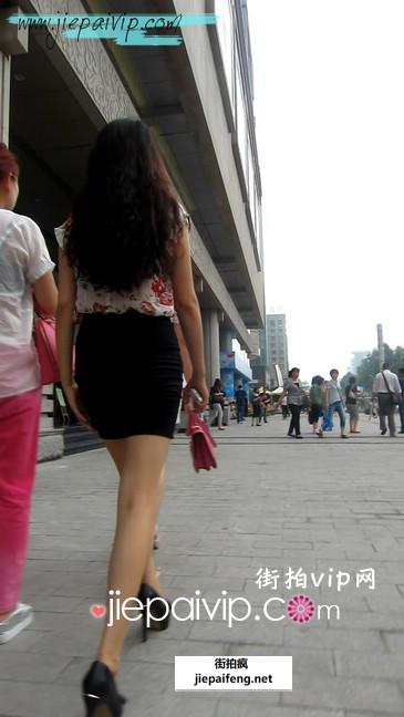 街拍黑色紧身包臀短裙少妇,性感的滴出水来了都