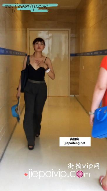 街拍大胸部美眉,胸太大了中心都会往前倾