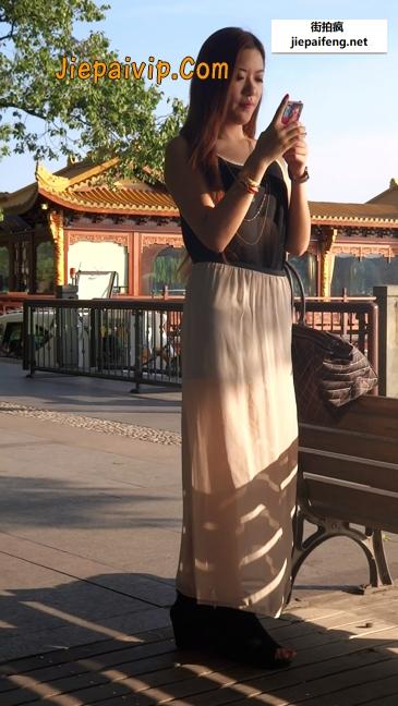 街拍阳光下的美女,侧开叉丝质长裙的诱惑