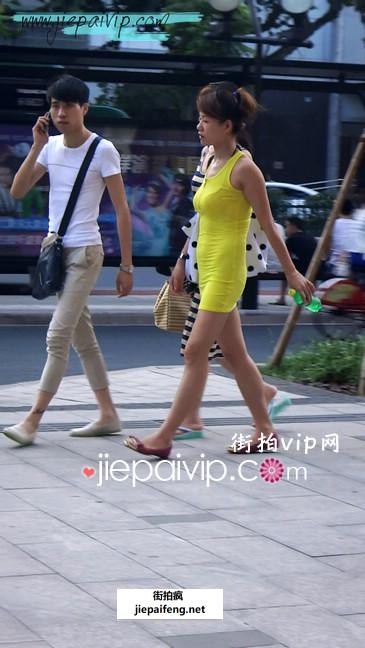 街拍黄色连衣裙少妇,很风搔的感觉
