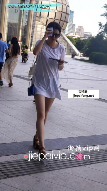 街拍美眉白体恤很另类可以露很多肉