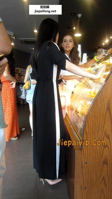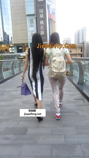 非常性感的长发美眉与长裙小姐妹一起逛街