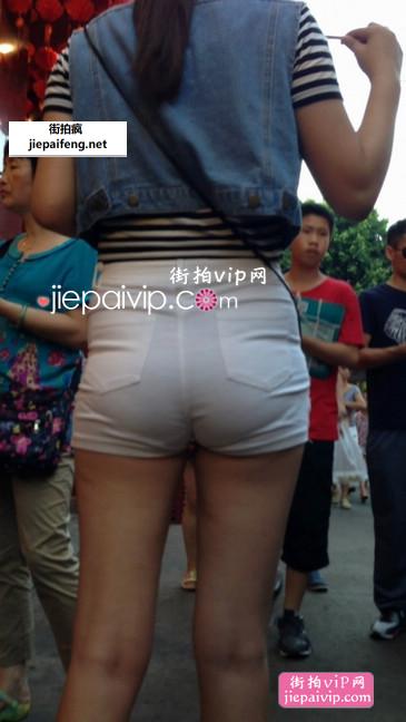 街拍清纯气质白色小热裤翘臀美眉