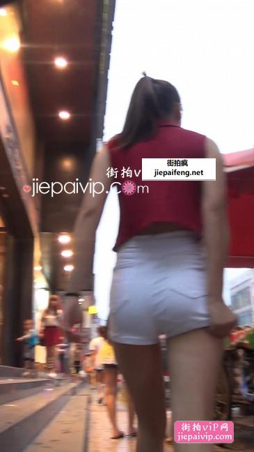 街拍红色背心小热裤美眉性感翘臀