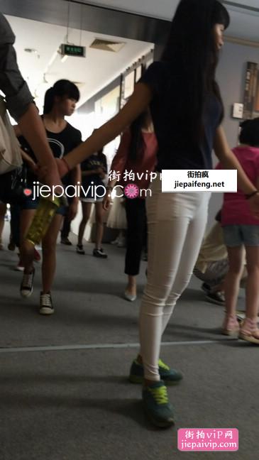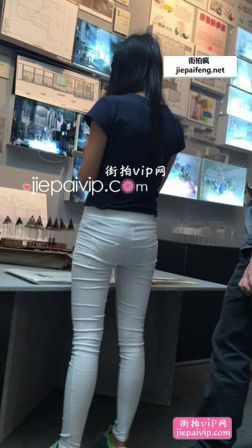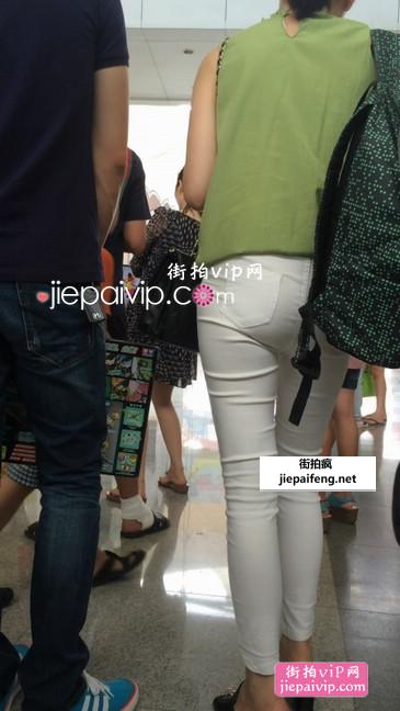 街拍白色牛仔裤美眉,牛仔裤超偷的内裤都看得见