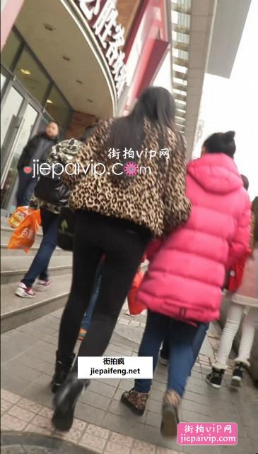 街拍狂野豹纹美眉黑色紧身裤超性感的