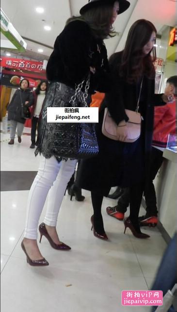 服装城的两个白色紧身裤少妇