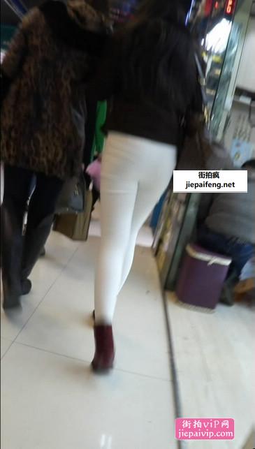紧致臀部细节完美展现的白色紧身裤美眉
