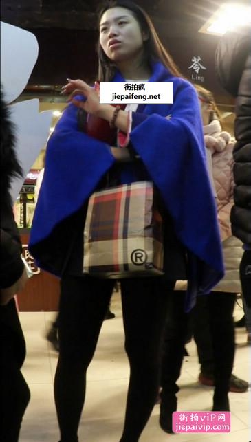 黑丝大长腿配蓝色披肩,美少女很有范!