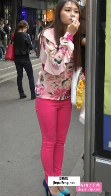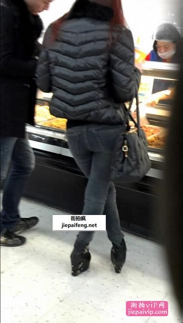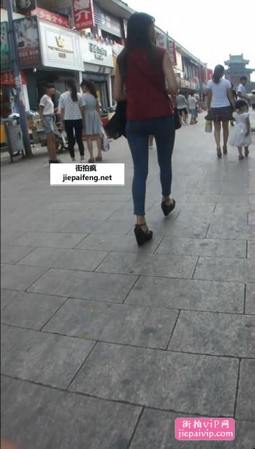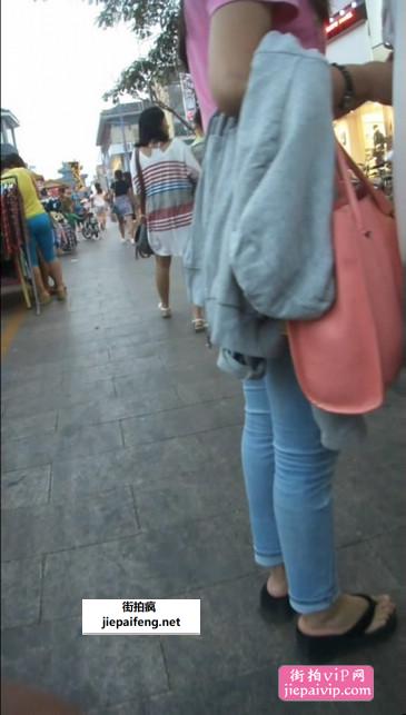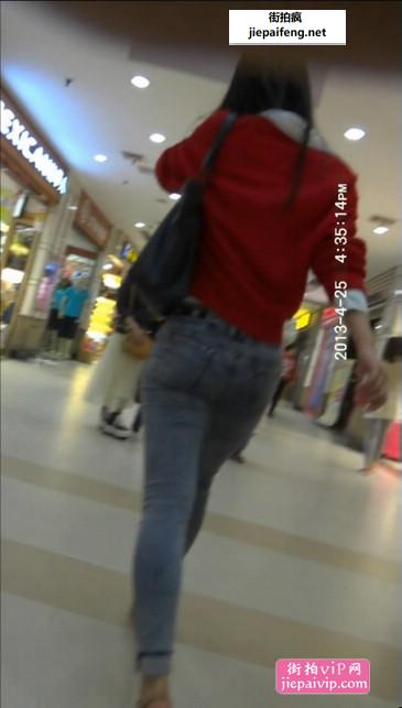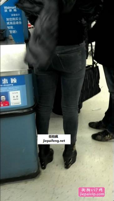 极品紧身牛仔细腰翘臀美女、难得一见啊