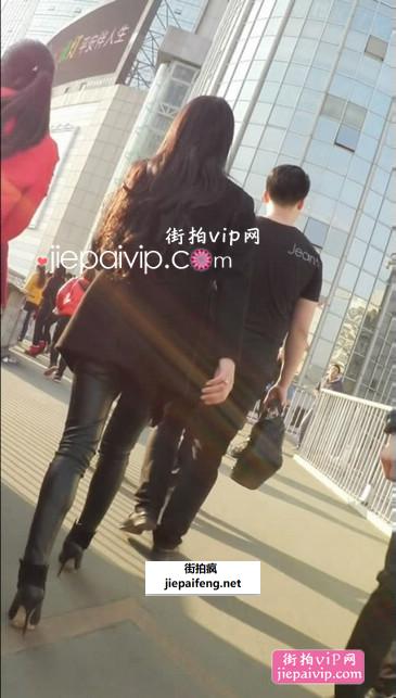 街拍非常靓丽性感的黑色紧身裤翘臀美女