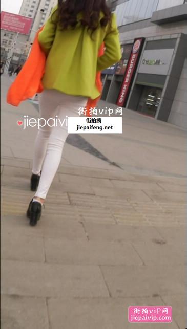 白色紧身牛仔裤美眉,小可爱痕迹清晰可见