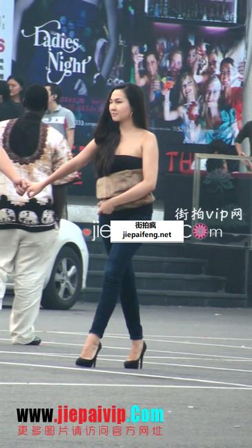包臀黑色超高跟的少妇,不戴奶罩凸点诱惑老外