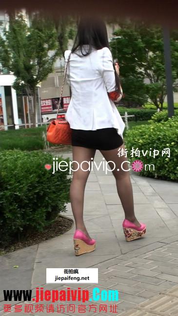黑高跟的美腿美女,裙子好短噢,小心刮风