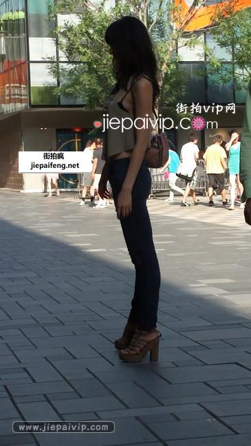 广场上的牛仔包臀少妇