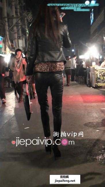 黑色紧身皮裤,超高跟美女,高靴包臀