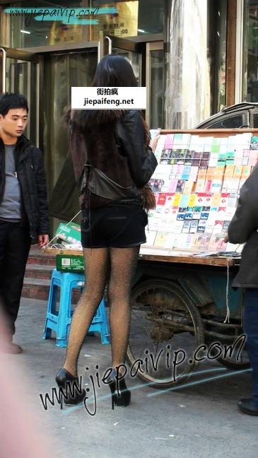 黑丝包臀的丝袜美女公然穿露裆黑丝在大街上发浪