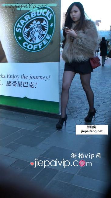 街拍低胸高跟的超短裙极品美女