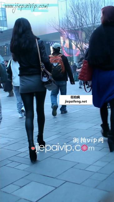 长腿美女的紧身皮裤,衬托的性感小屁股让人打噢
