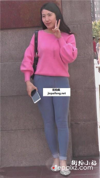 前庭圆鼓鼓紧身裤粉衣甜美女孩