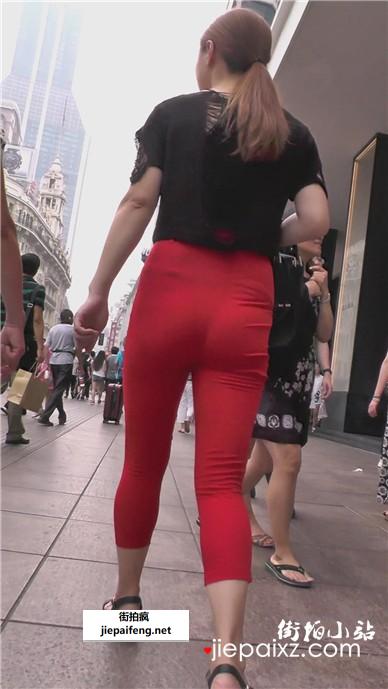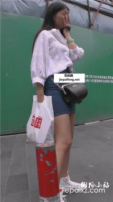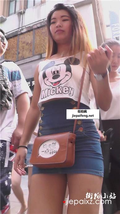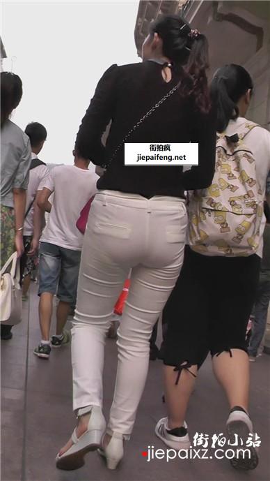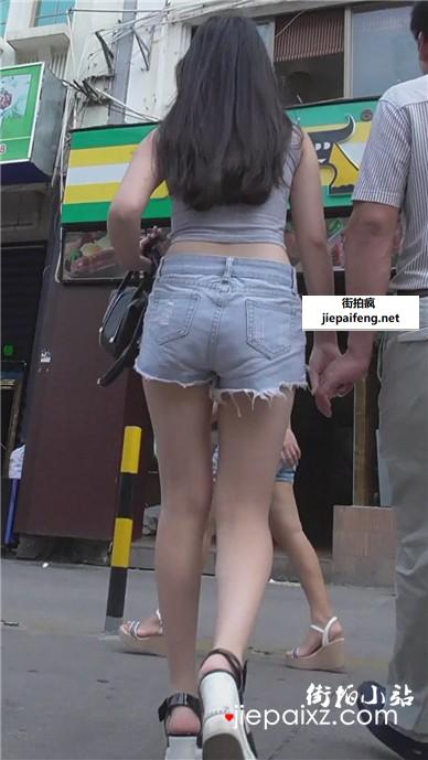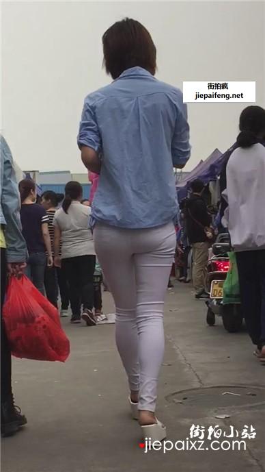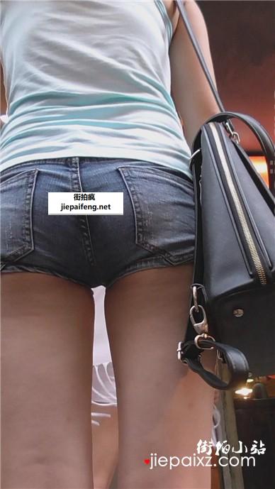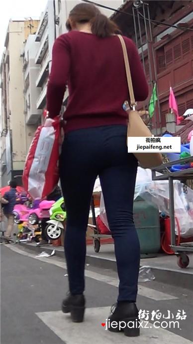 街拍紧身蓝牛性感肉臀美女,屁屁带劲