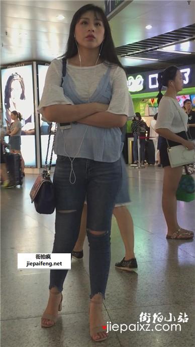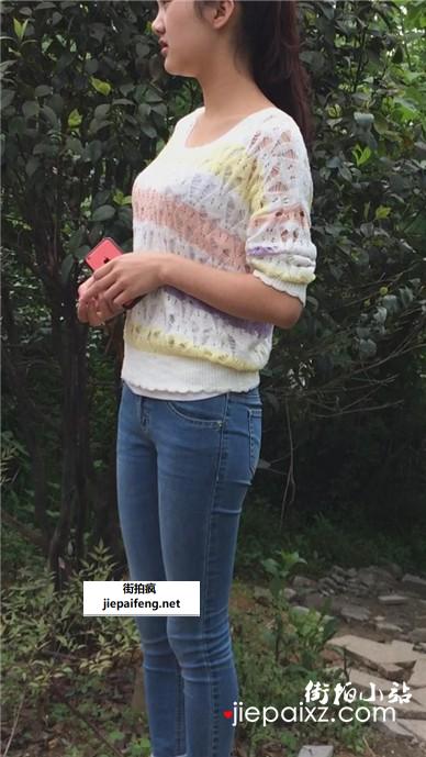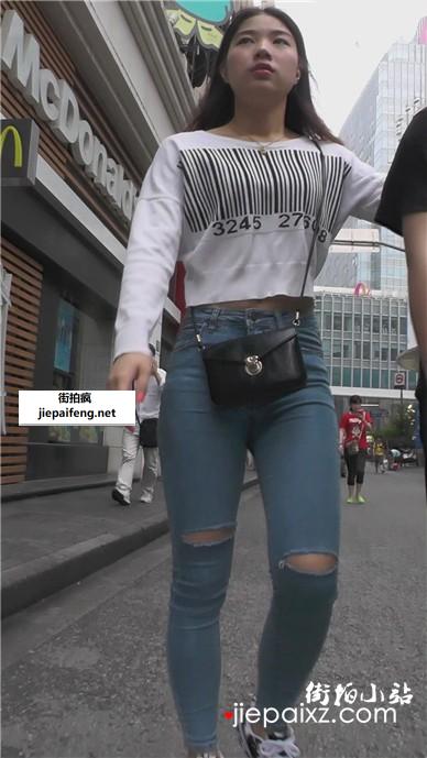 街拍翘臀紧身破洞牛仔裤小清新美眉